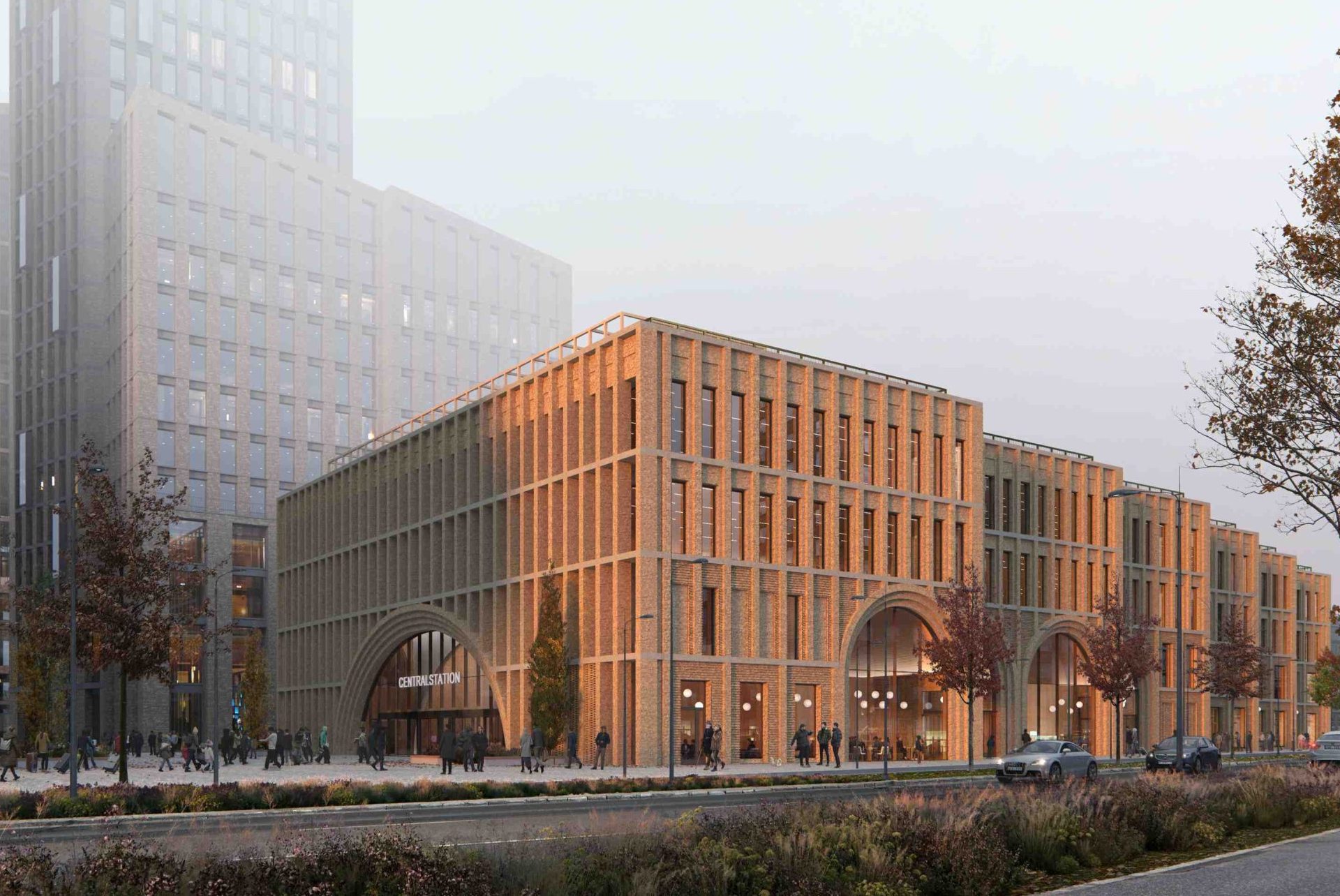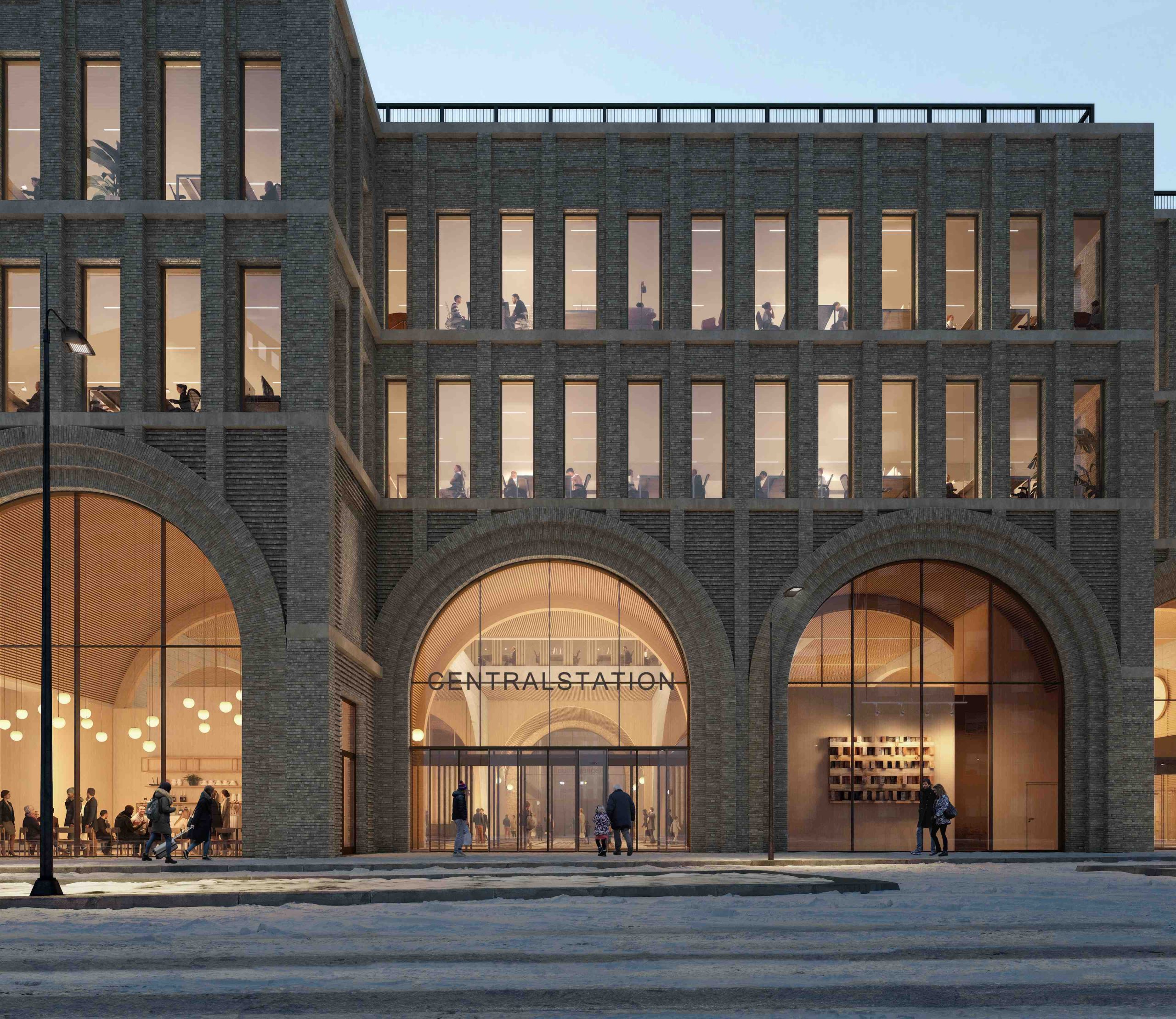Den imponerende stationsbygning, designet af Reiulf Ramstad Arkitekter, bliver indgangen til en nye bydel under udvikling. Her skabes et attraktivt nyt, levende miljø med et rigt udvalg af kontorer, boliger, hoteller, restauranter, dagligvarebutikker, serviceydelser og kultur.